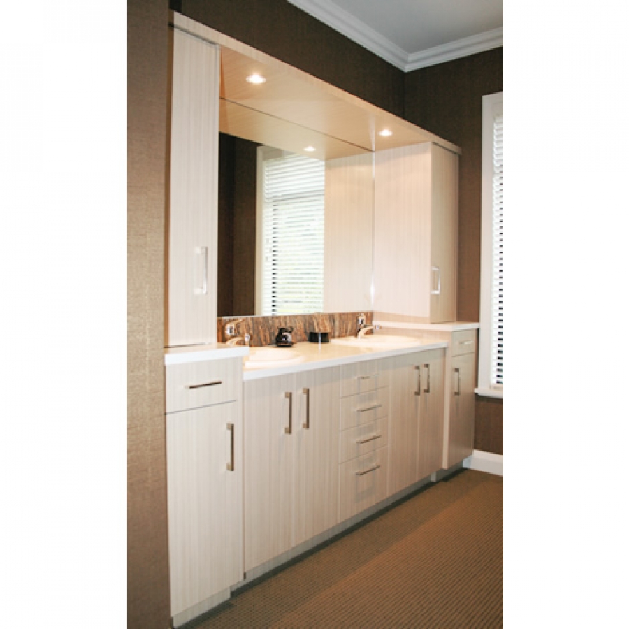 Our custom cabinetry can be used in more than just your kitchen. Develop Consistency through your bathroom and laundry cabinetry.